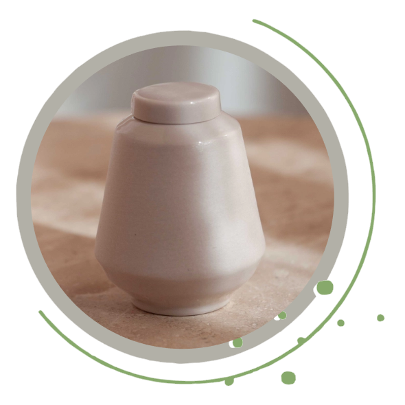 Deze handgemaakte urn kenmerkt zich door haar eenvoudige en rustige vormgeving. Met zachte tinten en een minimalistisch ontwerp straalt zij sereniteit en balans uit — een ingetogen, maar betekenisvolle aanwezigheid in elke ruimte.